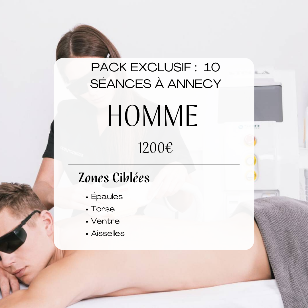 Êtes-vous prêt à dire bye-bye à vos poils indésirables ? Au Centre d'épilation définitive d'Annecy, nous offrons un pack pas cher et abordable en 2023 pour hommes comprenant l'épilation des aisselles, du maillot, du torse et du ventre, pour seulement 1 200 €.